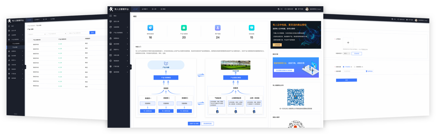 有人云为企业提供软硬件一站式的解决方案,赋能众多细分行业,提供安全可靠的设备接入、应用开发、组态服务、运维管理、数据统计与分析等核心功能,全面开放平台化能力,以模块化、组件化、系统化的能力帮助企业低成本、高效率搭建自己的物联网系统