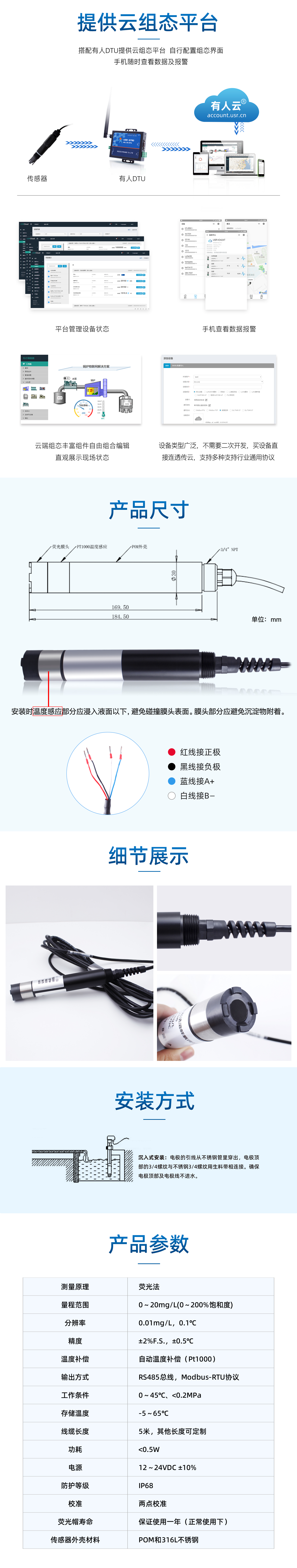 量程范围 0~20mg/L(0~200%饱和度)